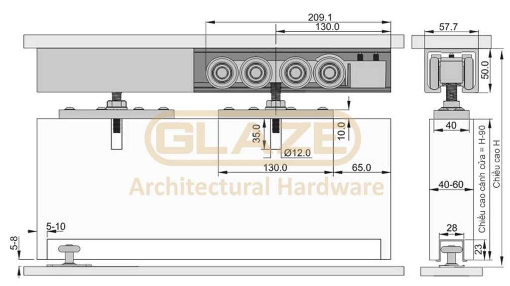 • Chuyên dùng cho cánh cửa trượt trọng lượng lớn.