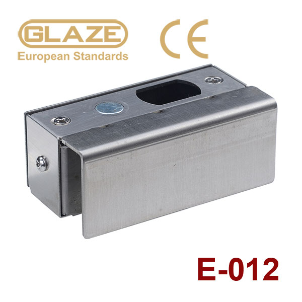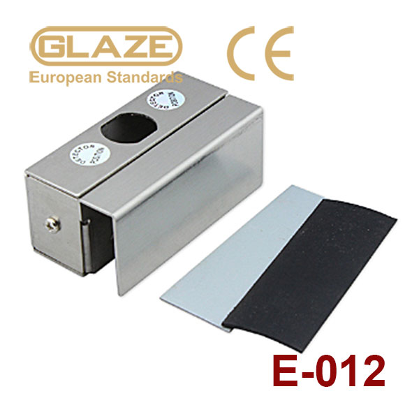 Kẹp kính E-012 chất liệu inox 304, là phụ kiện cho khoá chốt điện khi lắp đặt với cửa kính không khung. Chiều dày kính từ 10~12mm.