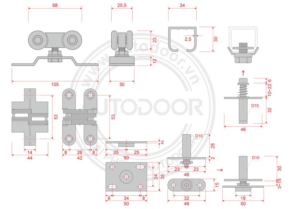 - Trọng lượng cánh cửa ≤ 20kg